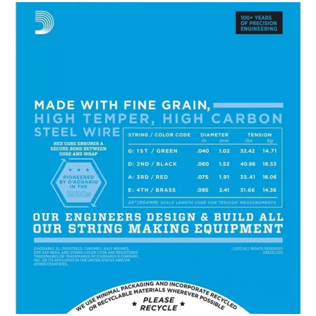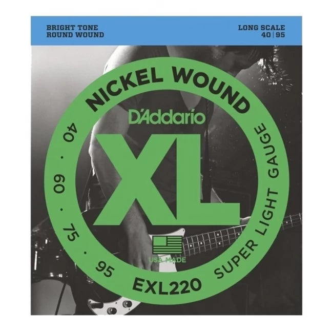 XL Nickel es el estándar de la industria en cuerdas para bajos eléctricos. Con sus fundamentos claros, sus bajos ajustados y su construcción confiable D'Addario, los jugadores de todo el mundo confían en ellos para manejar cualquier actuación. Las cuerdas de bajo XL Nickel están hechas con un núcleo de acero con alto contenido de carbono y enrolladas con alambre envolvente de acero niquelado, para un tono brillante constante y una jugabilidad suave, ideales para una amplia variedad de estilos de bajo. Estas cuerdas 40-95 Super Light tienen un ataque brillante y una tensión muy ligera, lo que las hace más fáciles de tocar.
