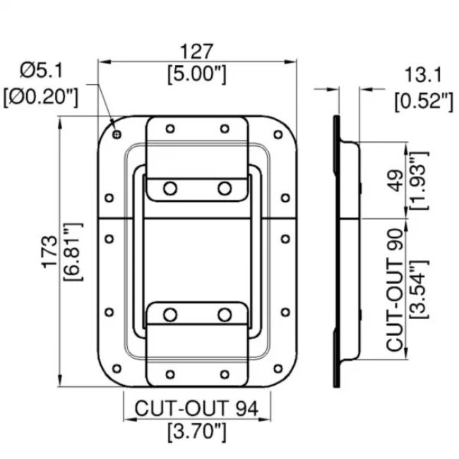 Penn Elcom 2102 | Bisagra con Tope y Base Profunda de 13mm / 1/2"