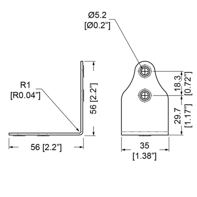 Soporte en L de 4 agujeros con protector de remaches