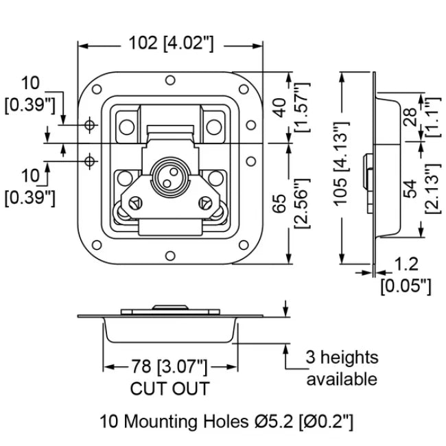 Penn Elcom L907-928K | Cierre mariposa mediano empotrado con relieve